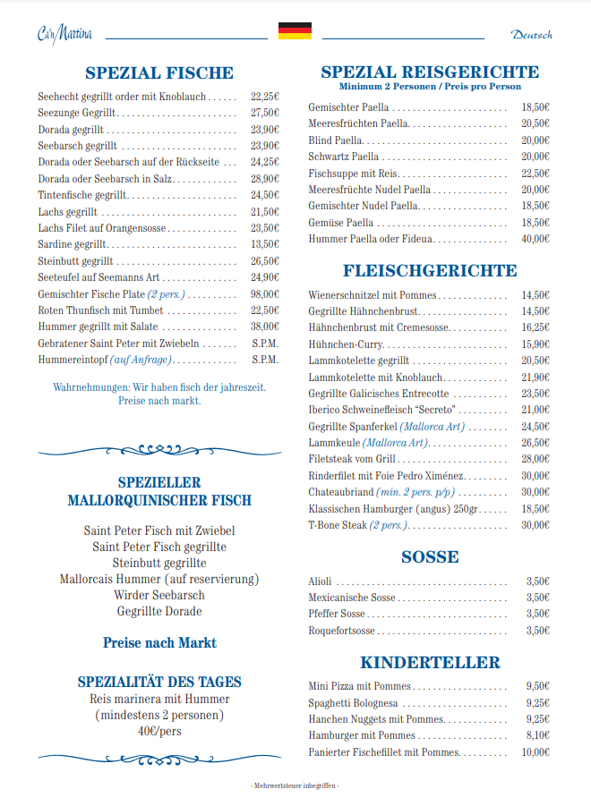 Visit us at Restaurante Ca'n Martina, we will be happy to serve you.