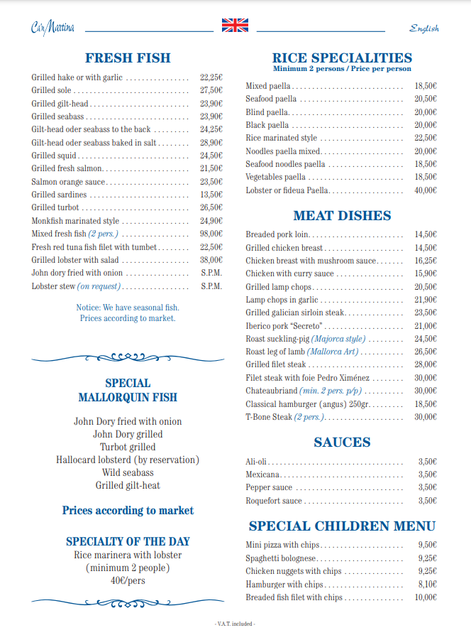 Ca'n Martina is a restaurant located in Portopetro (Mallorca), where you will discover all kinds of secrets about Mallorcan gastronomy. We are specialized in offering a wide and varied menu so that you will always find a gastronomic option that allows you to enjoy eating.