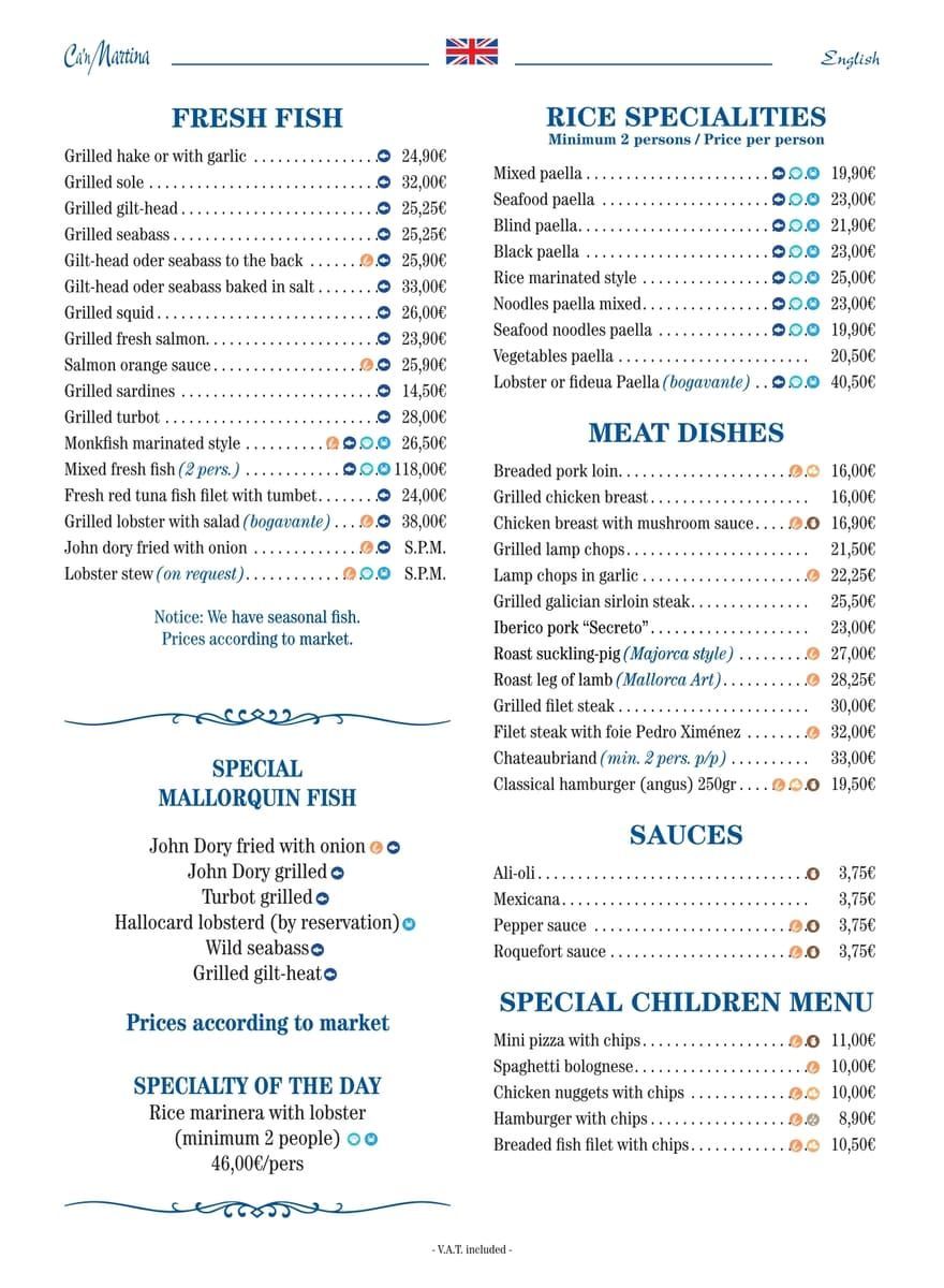 Ca'n Martina is a restaurant located in Portopetro (Mallorca), where you'll discover all sorts of secrets about Mallorcan cuisine. We specialize in offering a wide and varied menu so you'll always find a culinary option that will allow you to enjoy your meal.